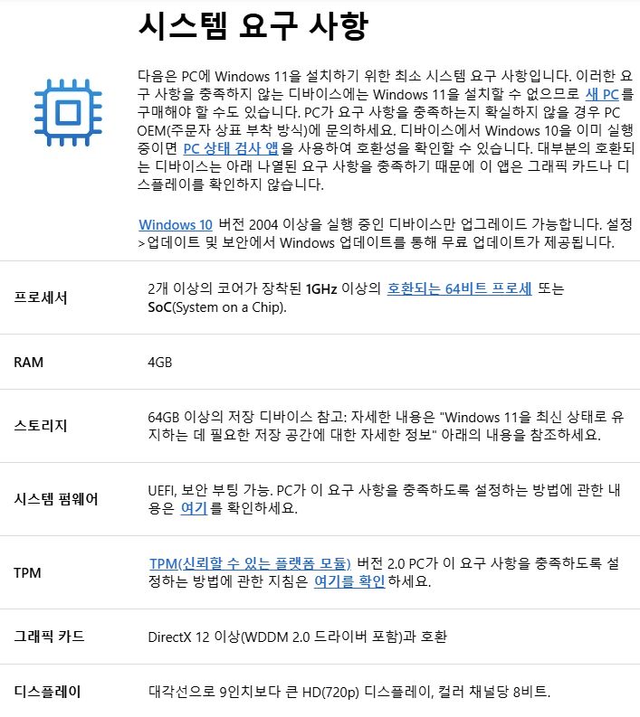 윈도우 11 요구사양 (2025.10. 윈도우 10 지원종료) 본문