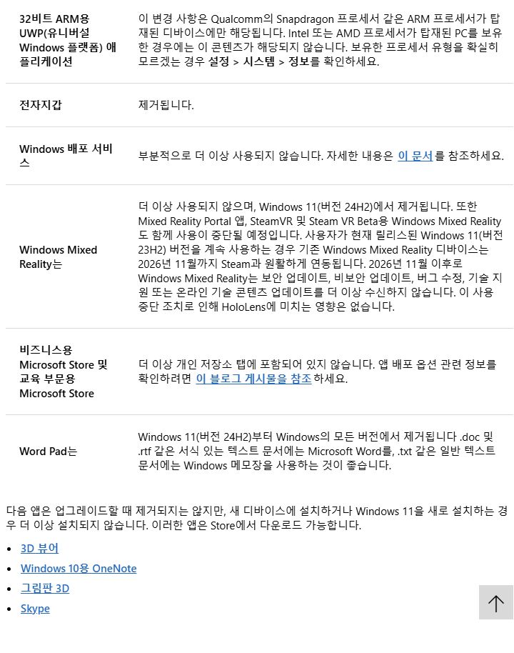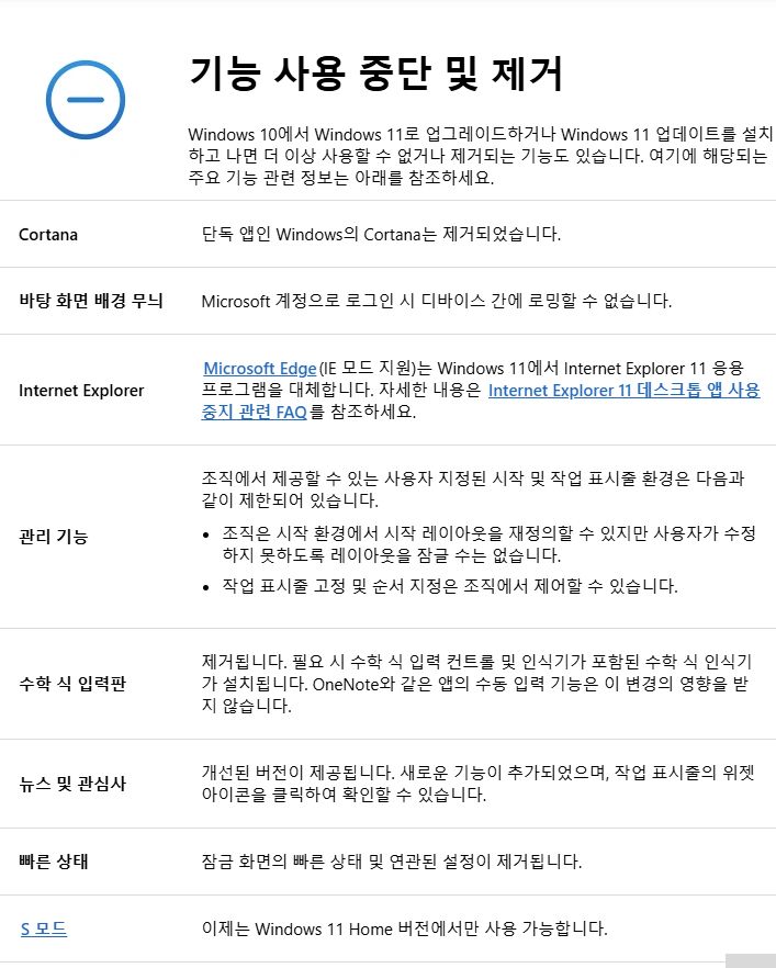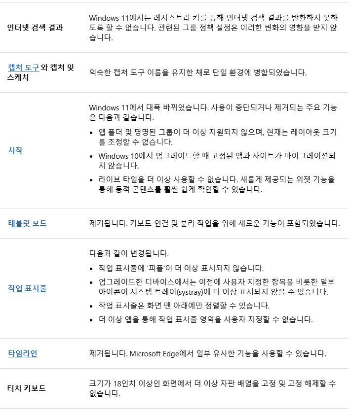 기능 사용 중단 및 제거: 윈도우 11에서 없어지는 것