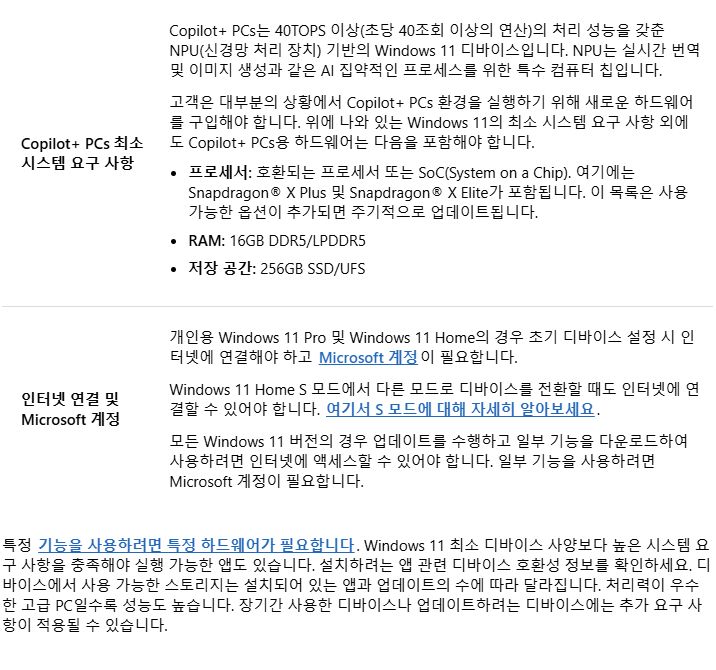 DirectX 12 호환 그래픽, TPM2.0 필수.