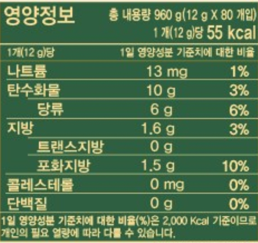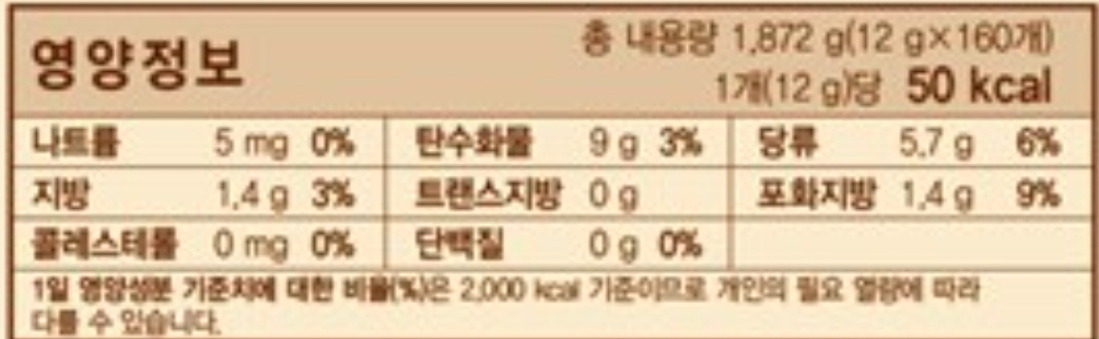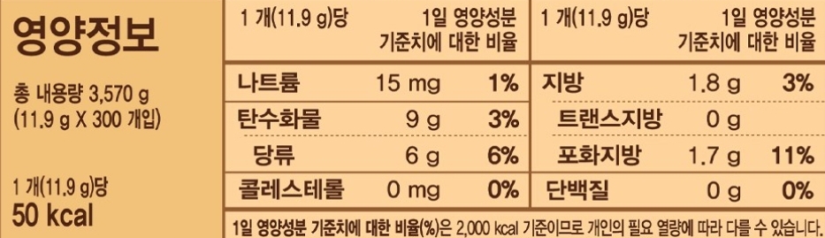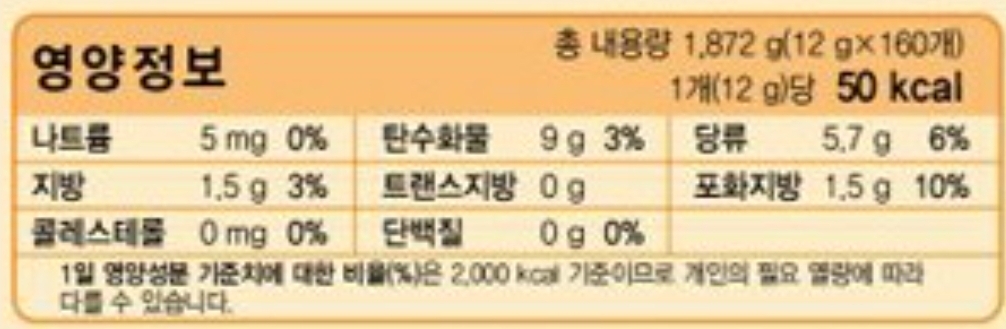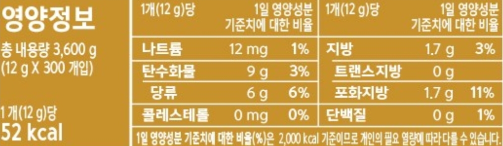 열량, 당, 포화지방은 표에 넣어주지만,