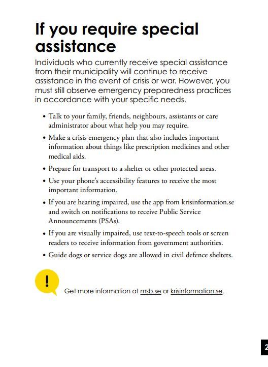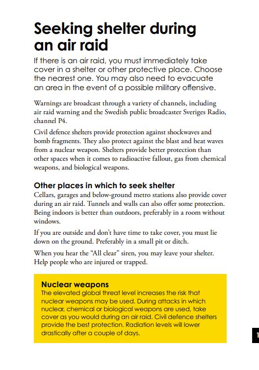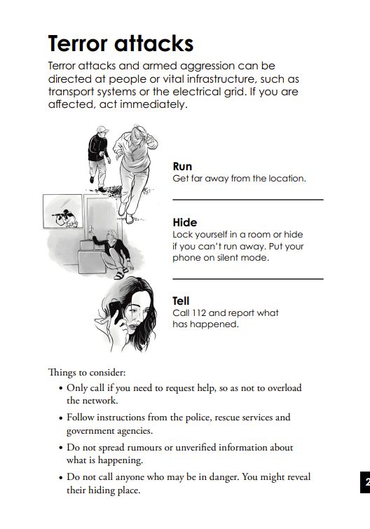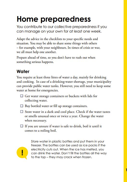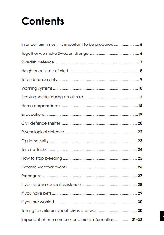 스웨덴의 전쟁, 재난대비 소책자(In case of crisis or war) 본문