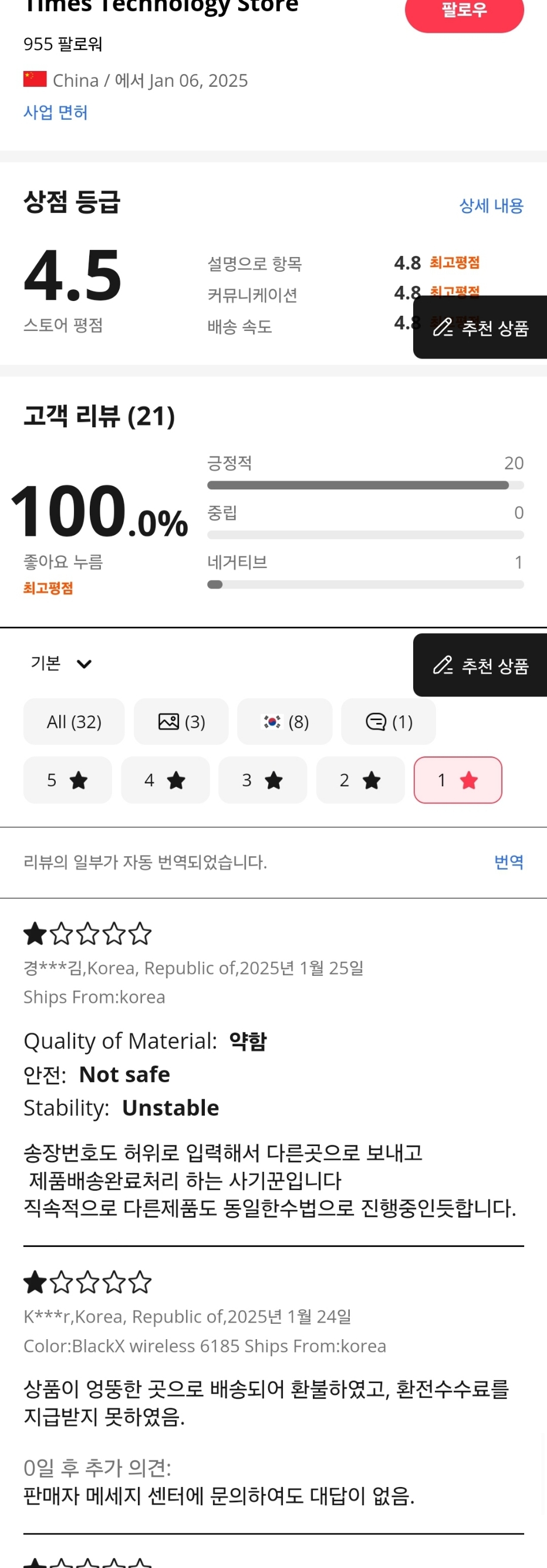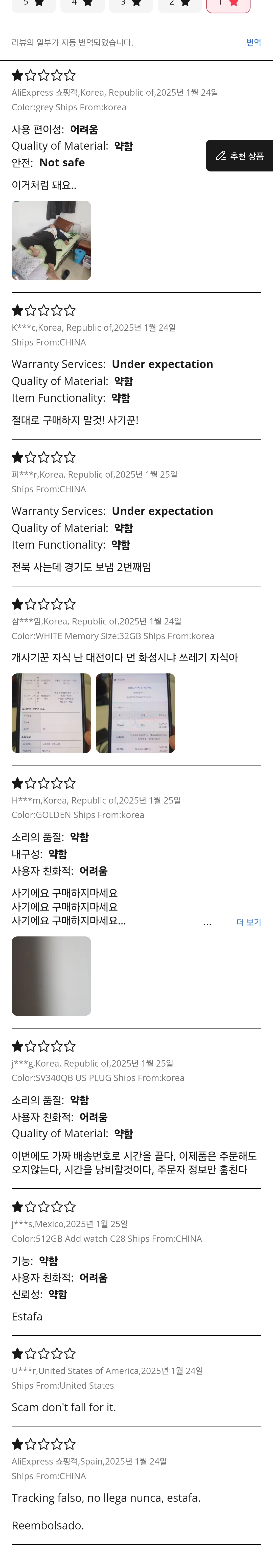지난 달부터 알리앱 알림으로 푸시광고가 뜬 판매자들입니다.1 전에 본 판매자는 알리사이트에서도 연관상품으로 띄웠는데.. 허위구매실적을 만들어서 알리 판매 베스트 순위에 열거돼 낚시질을 하는 것 같습니다.