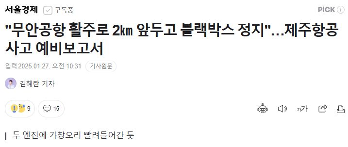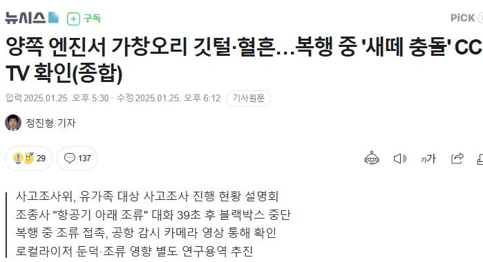 무안공항 제주항공 737 추락사고 요즘 기사/:/ 항공철도사고조사위원회 예비보고서 본문