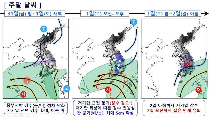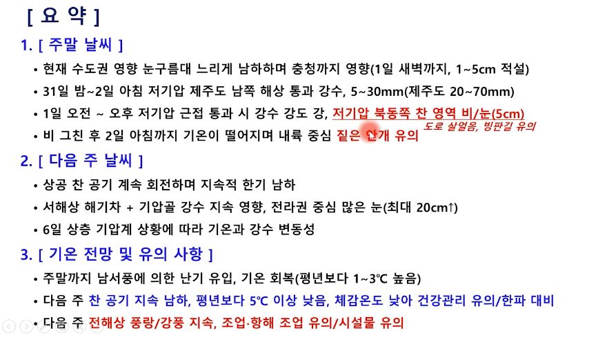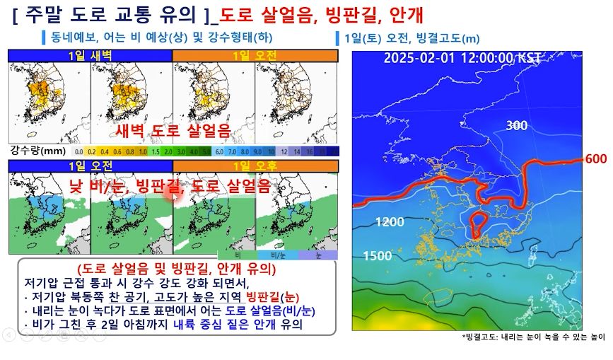 이번 주말 어는 비까지 예상! 도로가 코팅된 듯 미끄럽습니다. 다음 주는 강추위 (2025년 1월 31일 기상청 예보브리핑)