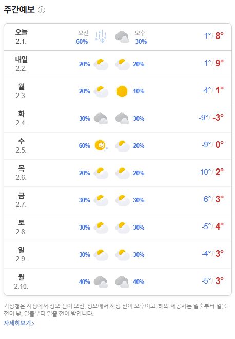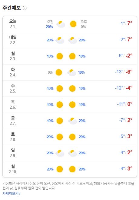 2025.2.1.토.~ 일기예보: 내주 중에 강추위 본문