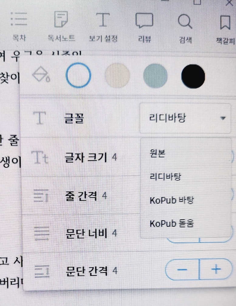 리디북스 PC용 뷰어 개선희망점: 글꼴 본문