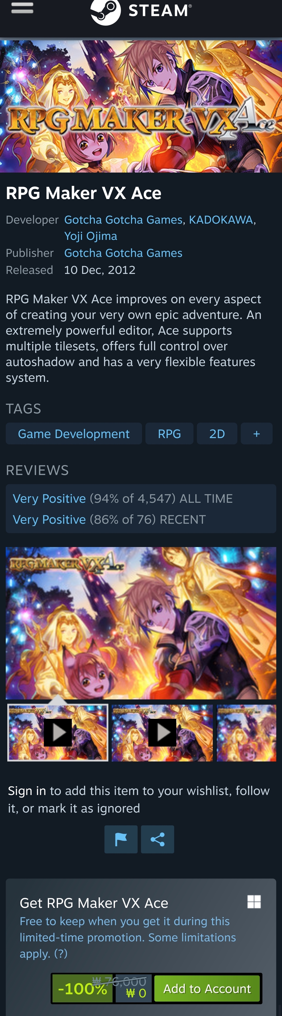 Save 95% on RPG Maker VX Ace on Steam