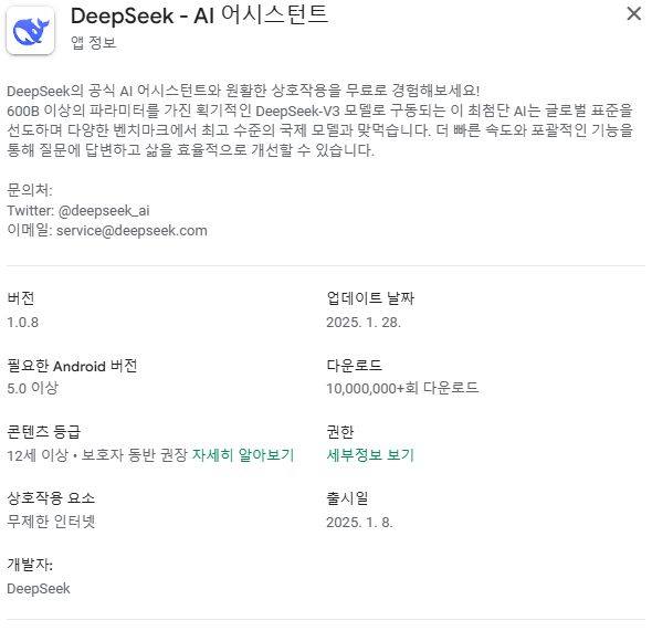 중국AI, 딥시크(DeepSeek) 앱이 요구하는 개인정보 본문