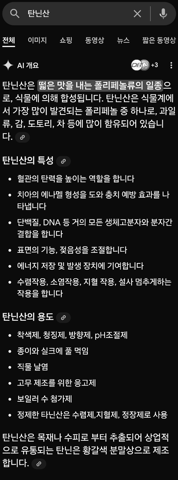 ㅡ "탄닌산은 강력한 항산화 효과를 가지며, 단백질과 강하게 결합하는 특성이 있어 생체 접착제 역할을 할 수 있다는 것을 입증"