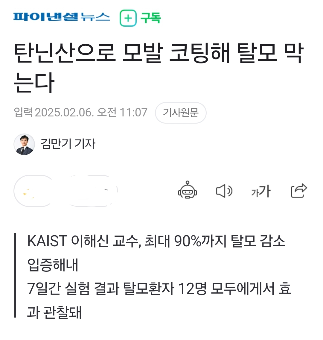 탄닌산으로 모발 코팅해 탈모 막는다