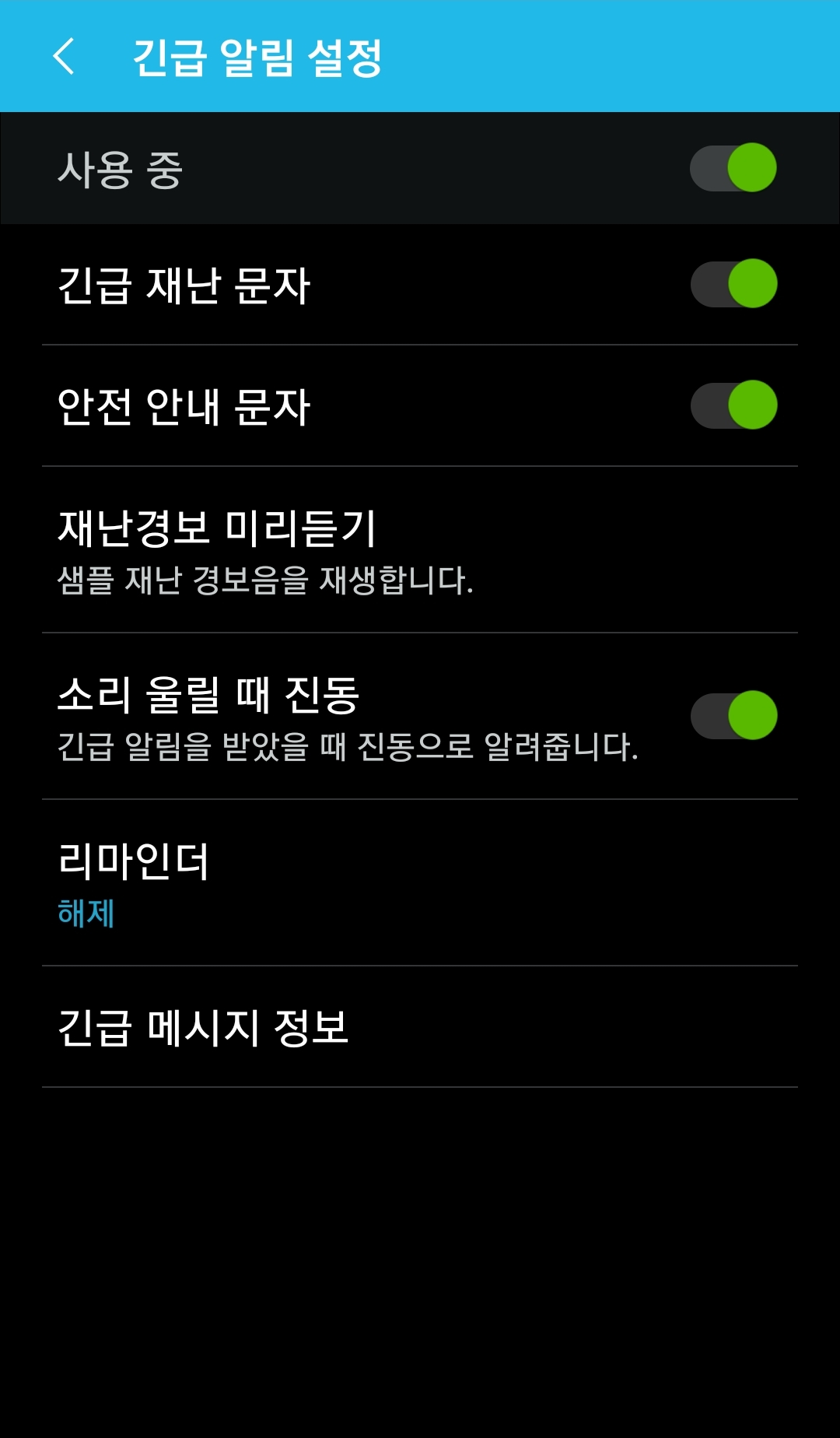 삼성전자 갤럭시 스마트폰 메시지앱(문자앱), 재난문자 설정 본문