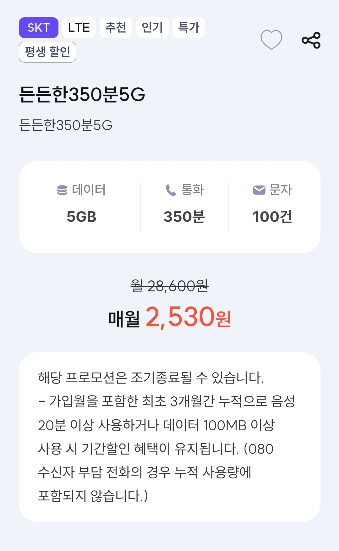 요금을 일정기간동안만 할인하는 게 아니라서(= 보통 "평생할인요금제" 등으로 부르는 것이라서)