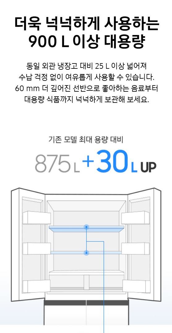 제가 냉장고를 새로 구입할 게 아니라서 추천은 아니고, 요즘은 가정용 양문형/4도어 냉장고 용량이 900리터를 넘겼길래 적어둡니다. 하지만 만약 제가 냉장고를 사야 한다면 이걸 골랐을 겁니다. 좋은 가격에 좋은 모델이네요.