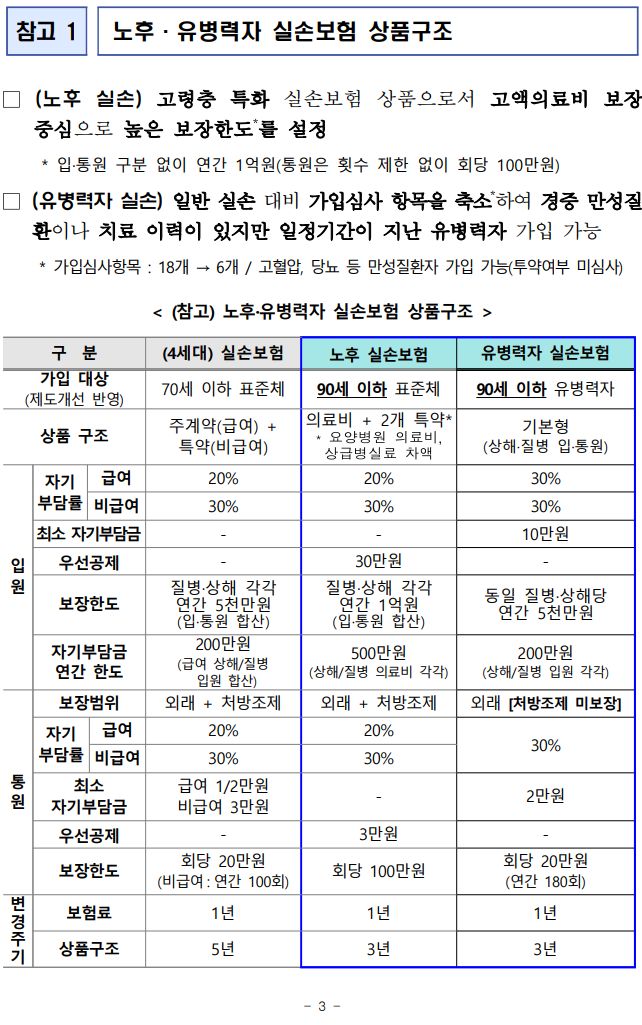 노후·유병력자 실손보험가입 연령을 현행 70/75세 → 90세로 확대(보장 연령도 100세 → 110세로 확대) 본문