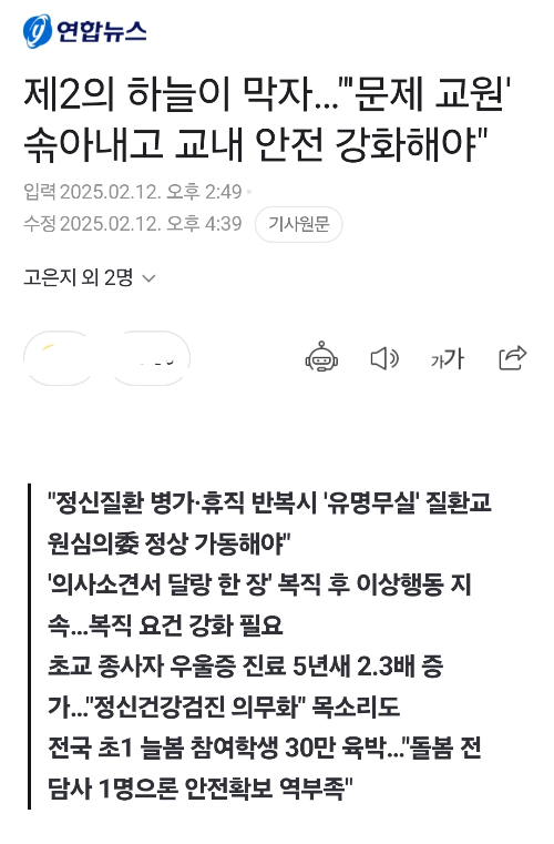 제2의 하늘이 막자…"'문제 교원' 솎아내고 교내 안전 강화해야"