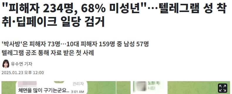 “텔레그램도 이젠 다 잡아” 234명 성착취한 일당 54명 검거 - 동아일보 2025.1.24