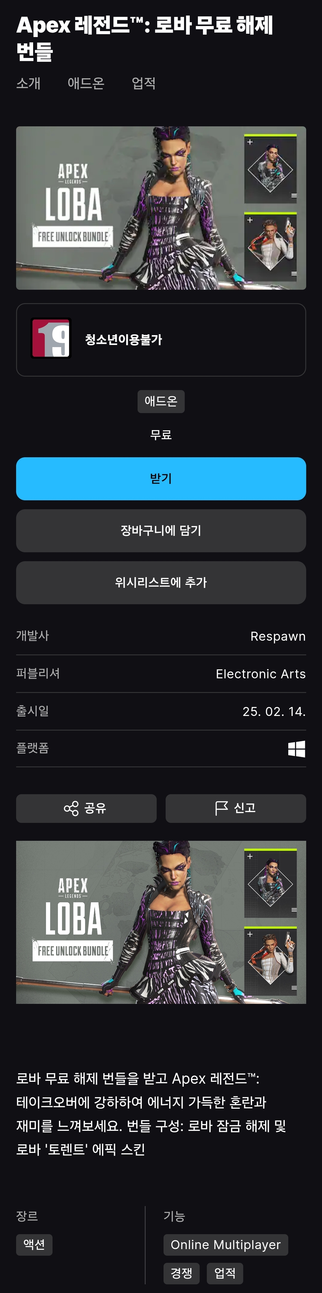 (에픽게임즈 무료게임) Apex 레전드™: 로바 무료 해제 번들 본문