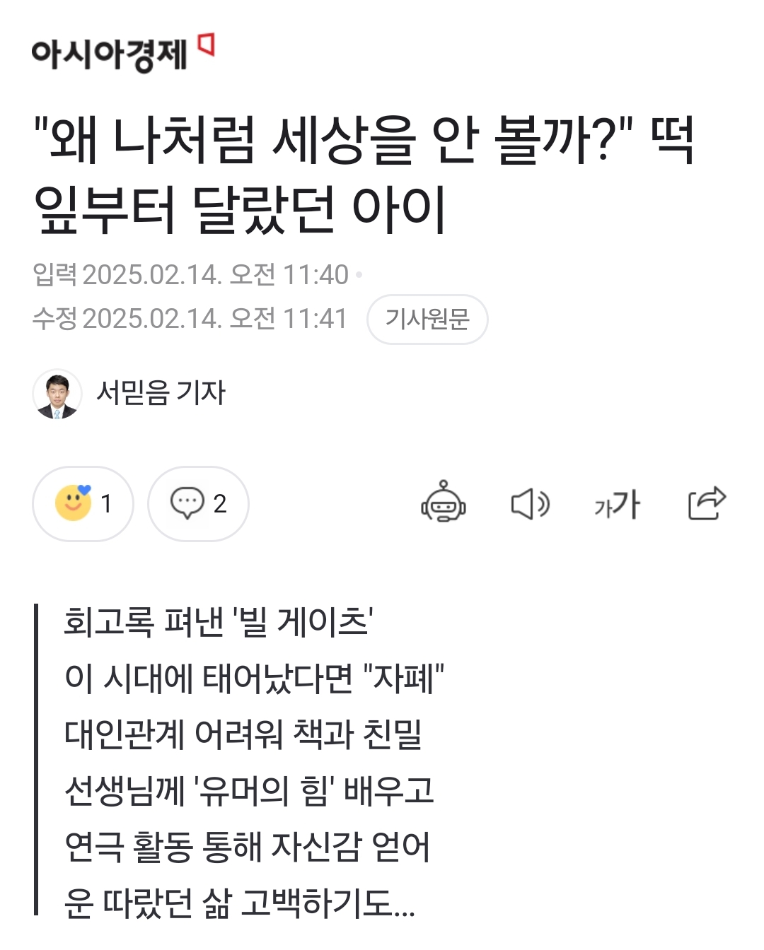 "왜 나처럼 세상을 안 볼까?" 떡잎부터 달랐던 아이