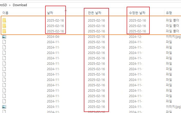 스마트폰에서 볼 때는 확인할 수 있었던 파일 생성일자 정보가 완전히 사라지기 때문에,
