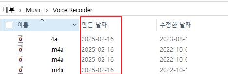 기본으로 보이는 파일 날짜가 새로 박히지 않는 경우, 예를 들어 음악파일인 경우에는,