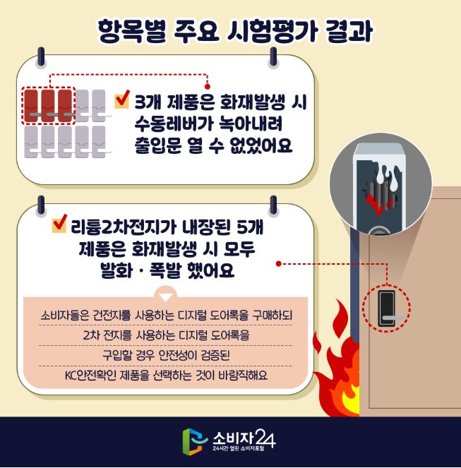 해외직구 디지털 도어록, 일부 제품 화재발생 시 문 열 수 없어요