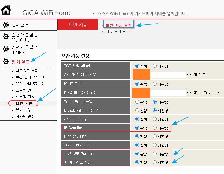KT 구형 인터넷 공유기의 보안 기능에 대해 메모 본문