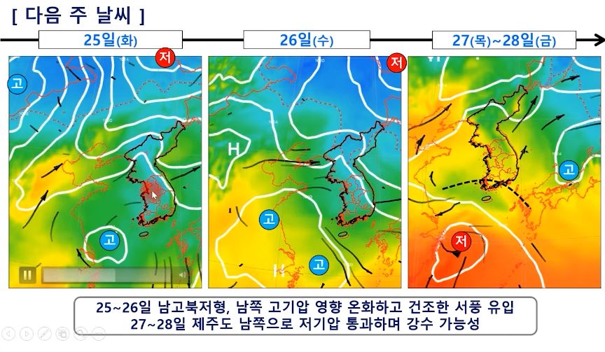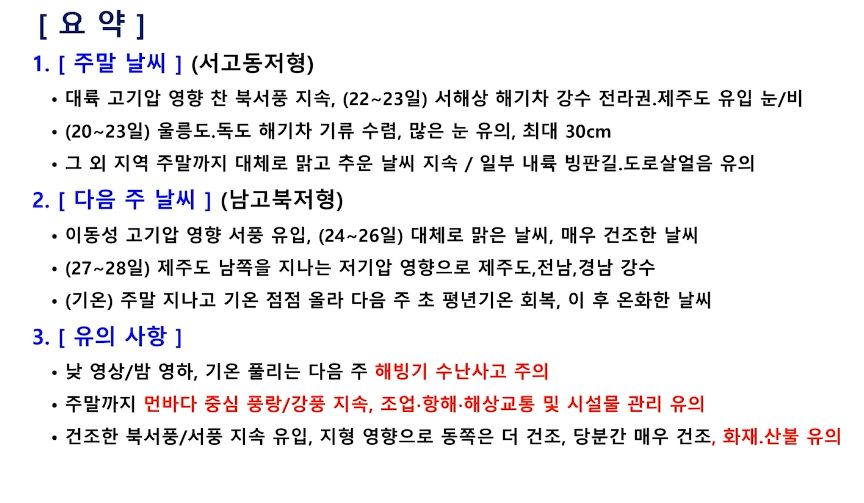 요즘 날씨설명부분은 영상을 보세요. 예보부분 일부만 인용합니다.