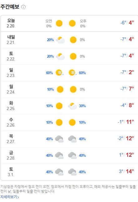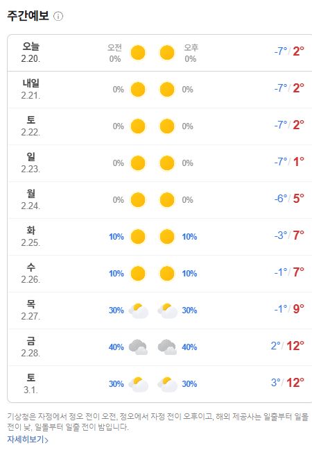 2025.2.20.금.~3.1.토. 일기에보: 주말까지는 춥고 내주 중반부터 따뜻. 건조한 날씨 계속 본문