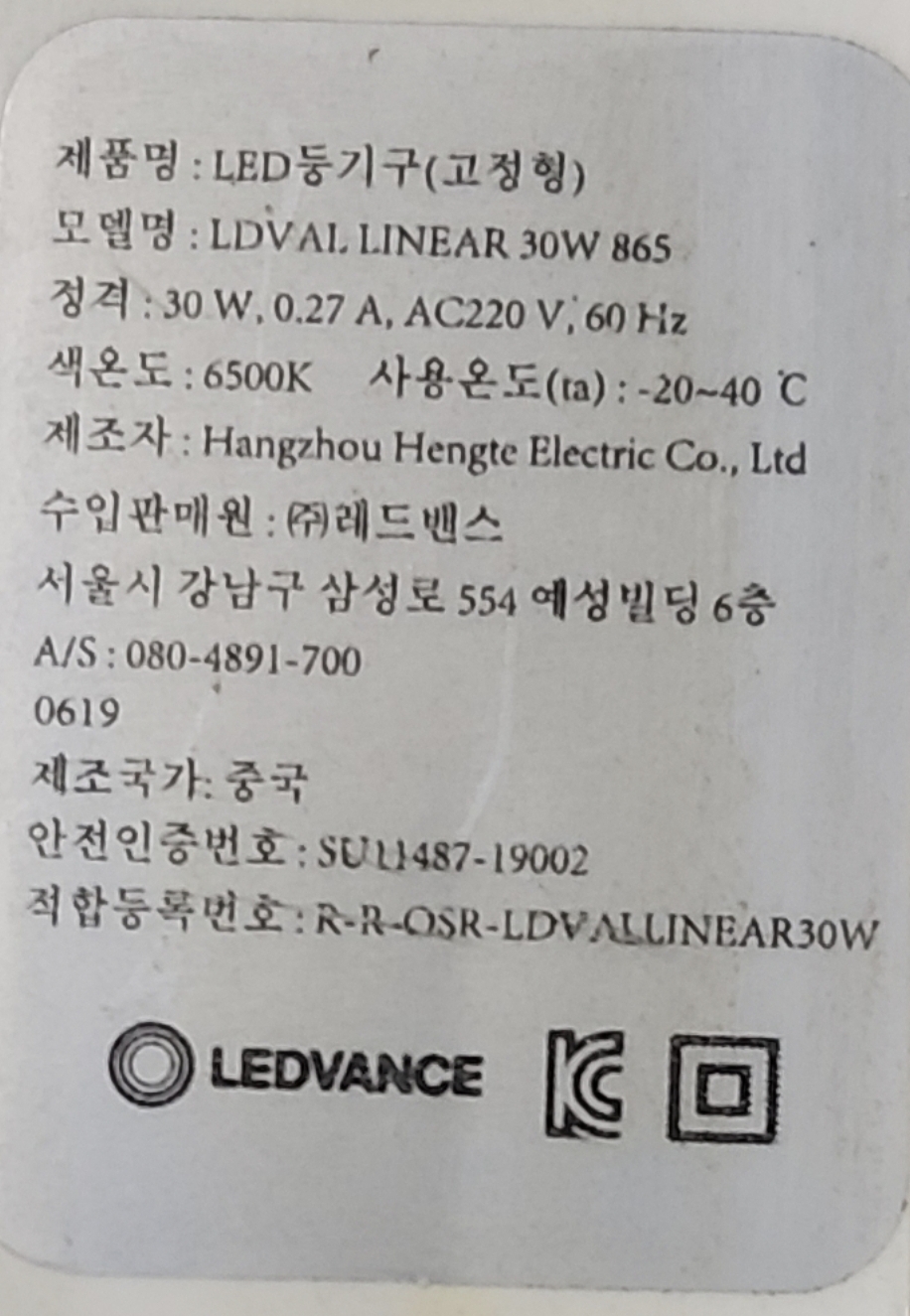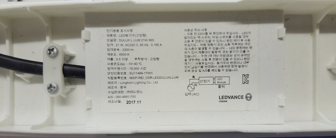 오스람(OSRAM)이라고 광고하는 레드밴스(LEDVANCE) LED 일자등은 역률이 0.5짜리니 주의 본문