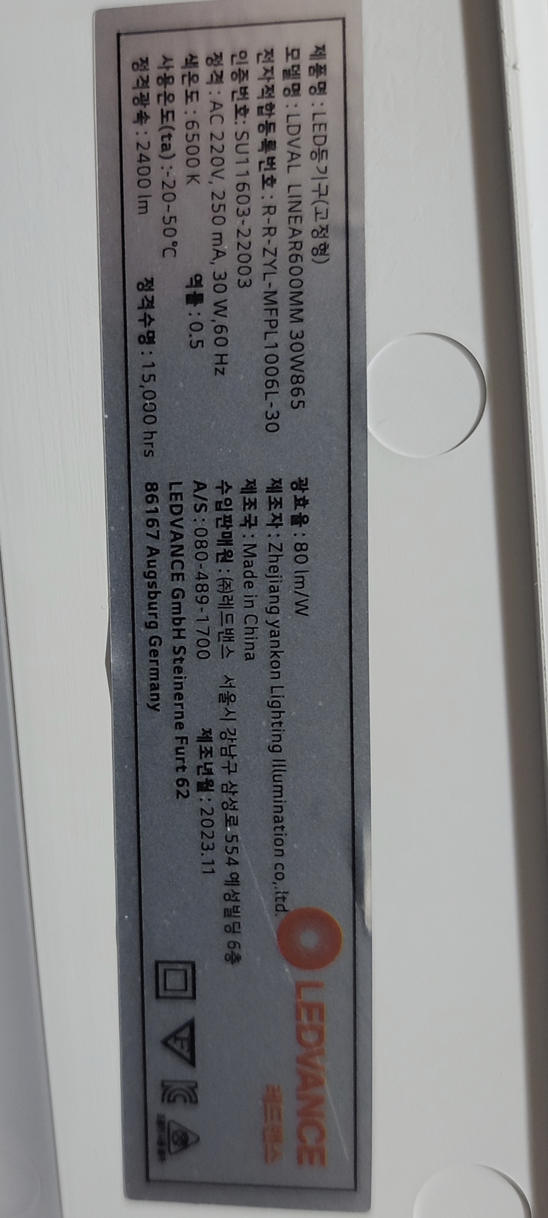 내돈내산입니다. 사용 중인 오스람 등기구가 고장나가는 것 같아 대체용으로 주문한 것안데,