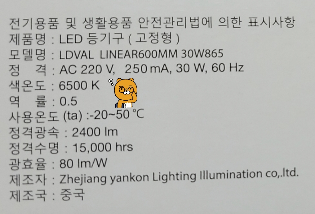 * 연색성지수(Ra), 색온도, 실제 색감이 어떨지에 대해.. 하지만 중국에서 바로 건너오는 것이나, 제조기반이나 노하우없이 중국에서 물건떼다 택갈이해서 파는 유통전문 브랜드의 경우는 신뢰도가 내려갑니다. 써봐야 확인이 돼요.8 일단 직구쪽은 대놓고 사양표를 사기치고 있어요. 쓰레기가 오니 금지. 그리고 유통은 수입 로트별로 고지없이 변경될 여지도 있습니다. (삼파장형광등때부터 KC인증은 제대로 된 걸로 받고, 나중에 물량수입은 단가줄인 걸로 가져오는 업자들이 있었어요)