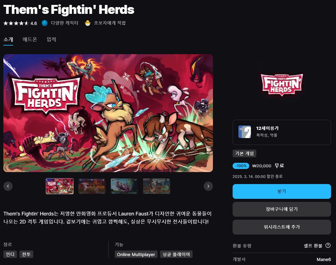(에픽게임즈 무료게임) Them's Fightin' Herds 본문