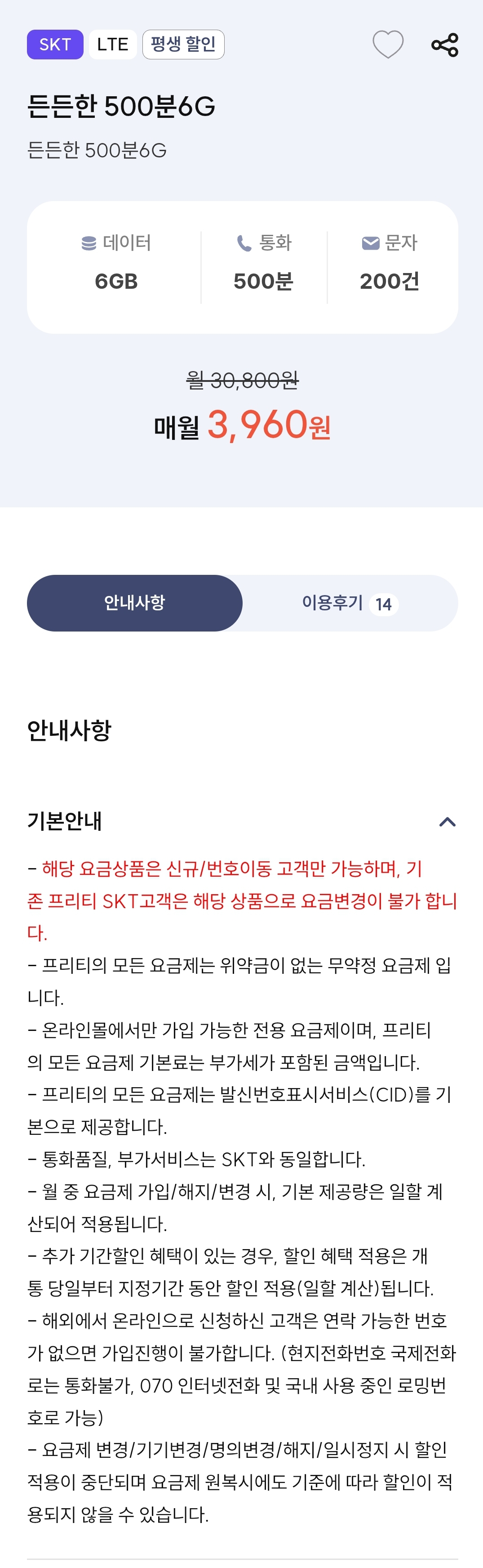 프리텔레콤 https://www.freet.co.kr/plan/ratePlan/detail?svcCd=PC0SB00131