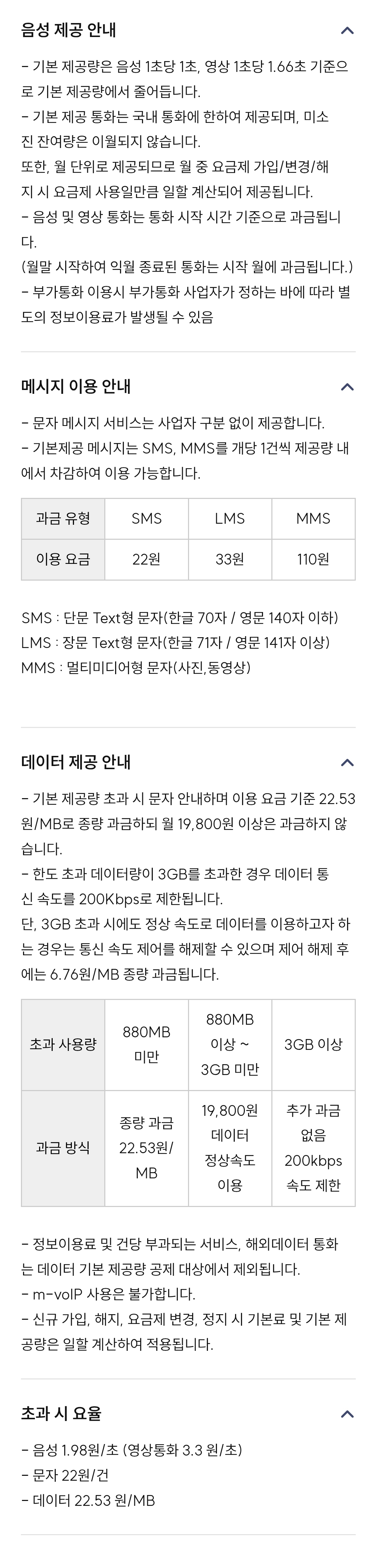 ㅡ 데이터는 기본제공량을 다 쓴 다음에는 19800원 안심옵션이 걸려있습니다(이건 풀고 싶으면고객센터에 요청하면 풀어줍니다. 회사에서는 이득이니)