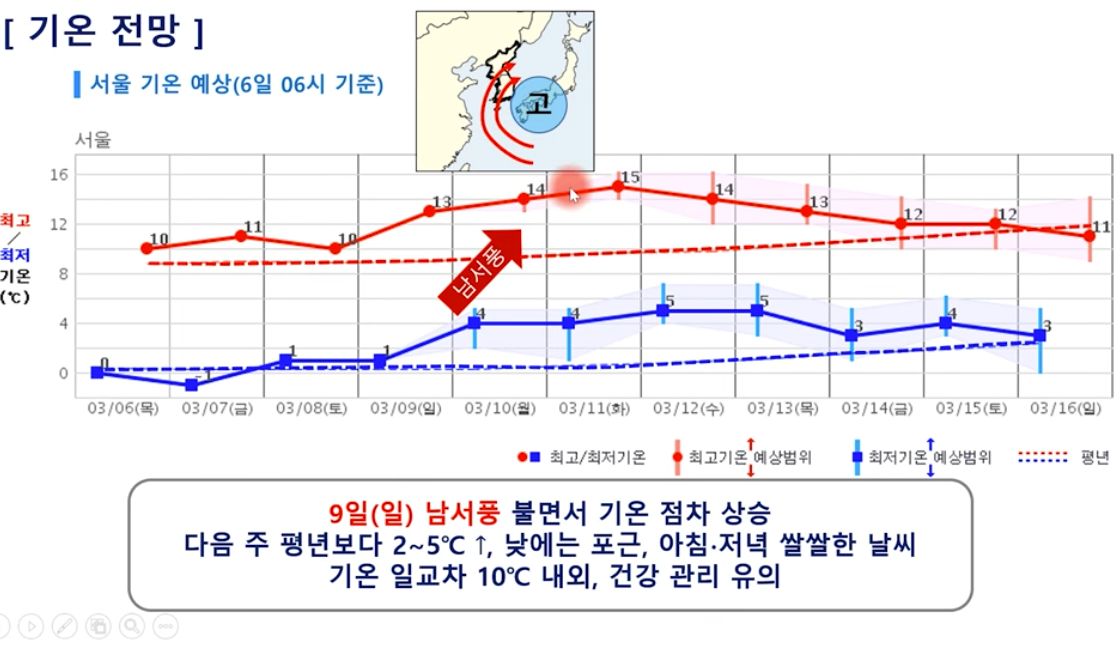 드디어 봄맞이! 패딩 세탁하고 트렌치 코트로! (2025년 3월 6일 기상청 예보브리핑)