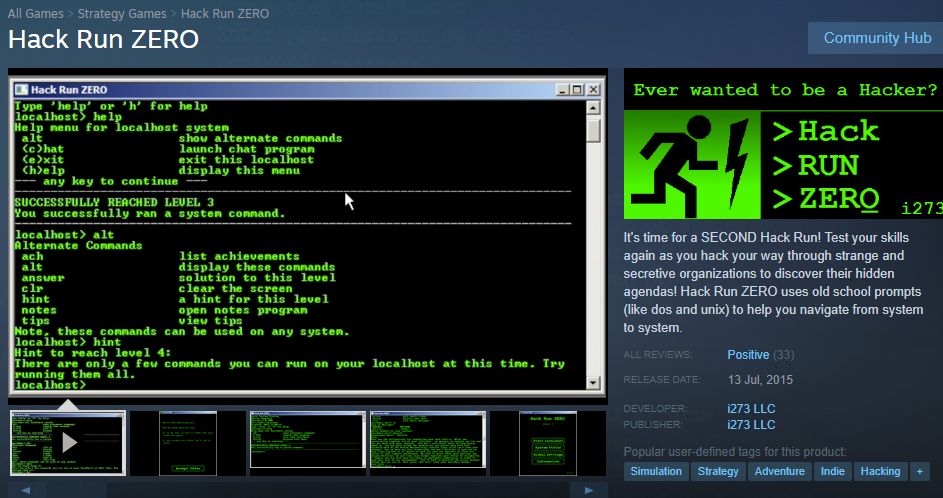 Ever wanted to be a hacker? Hack your way into the heart of a mysterious organization to uncover their secrets. Hack RUN® is a game which uses 'old school' command prompts (like DOS or UNIX) that simulate a real operating system. Learn the commands of eac