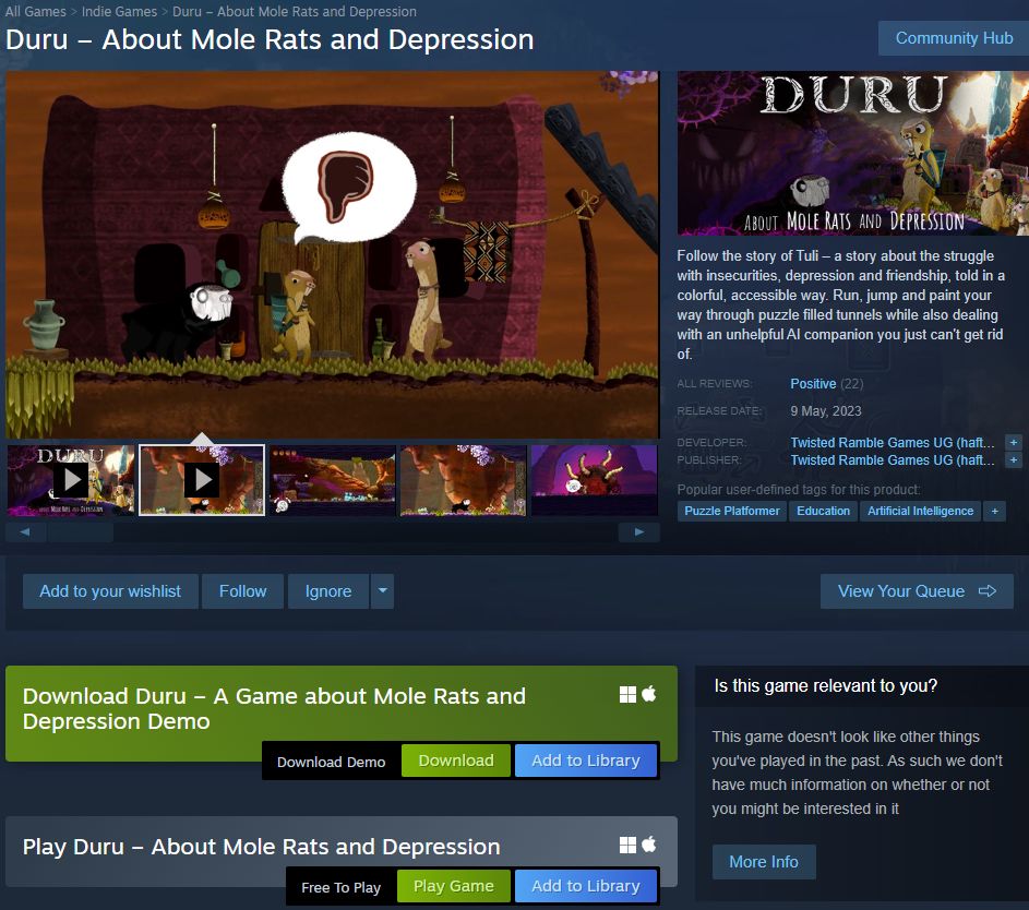 https://store.steampowered.com/app/1387900/Duru__About_Mole_Rats_and_Depression/
