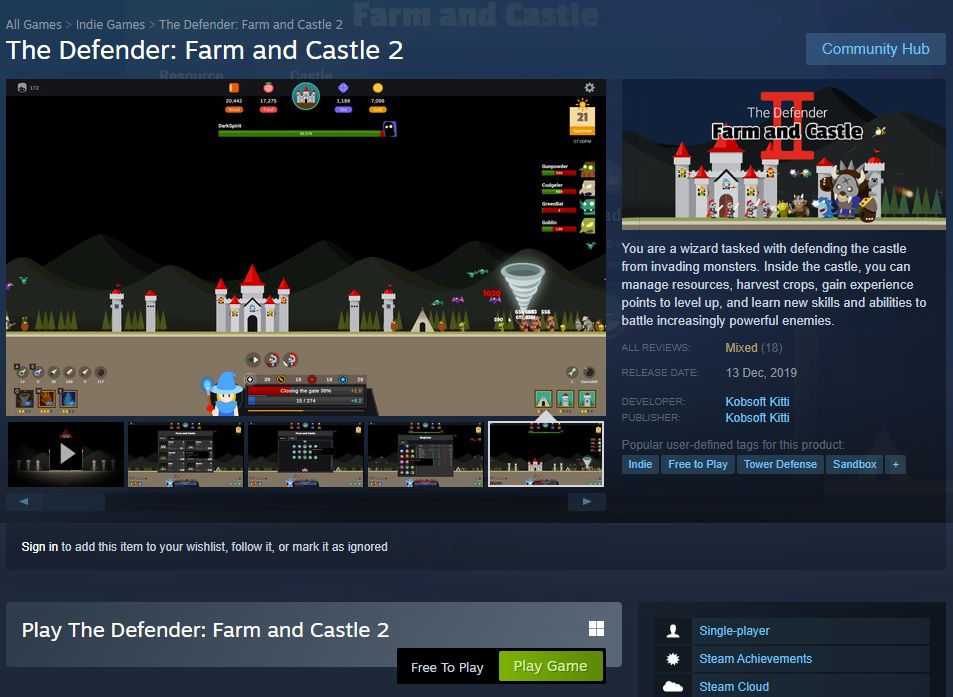 (스팀 무료게임) The Defender: Farm and Castle 2 본문