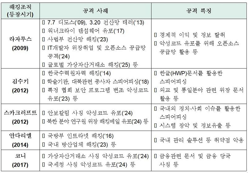 ※ [첨부] 국가배후 해킹조직의 주요 공격 및 특징