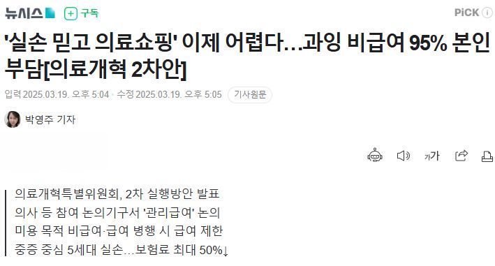 주목적은 "급증하는 실손보험료를 잡아보려는 것"이라는데, 이 글을 적으면서 기사를 읽어봐도 바로 와닿는 게 없어서 잘 모르겠다. 일단 우리집은 진짜 물리치료가 아닌 도수치료같은 걸 받고 다녀본 사람도 다니는 사람도 없고, 건강보험이 안 되는 좋은 수술실이나 소모품을 수술이나 시술 전에 옵션으로 골라 써가며 시술/수술받은 사람도 없어서.