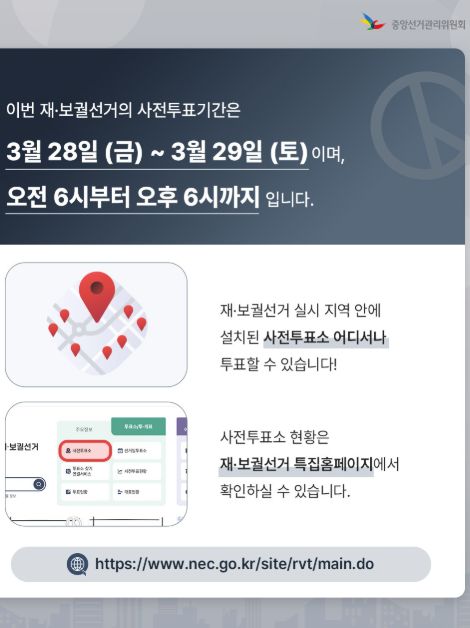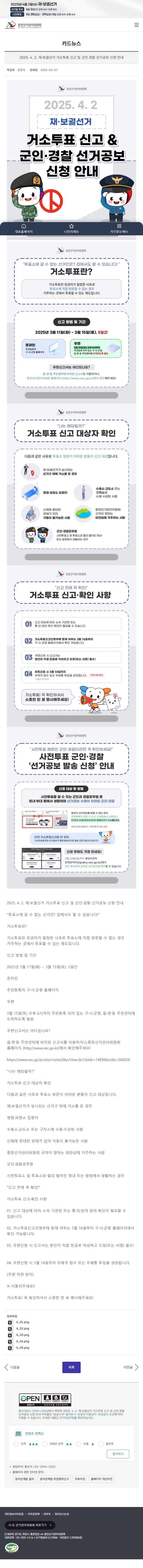 2025년 4월 2일 (수)재·보궐선거, 대상 선거구 목록/:/ 사전투표방법 /:/ 거소투표(우편투표) 개선희망점 본문