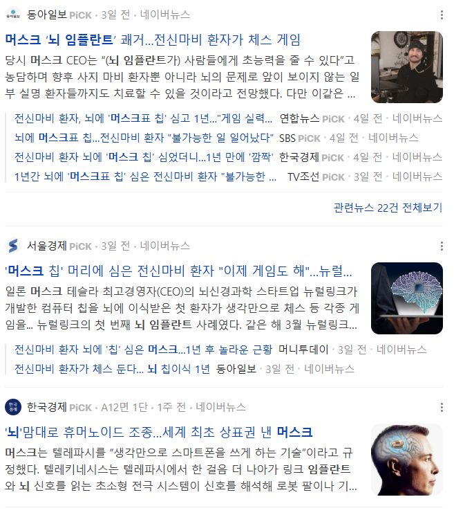 머스크 뇌 임플란트 : 네이버 뉴스검색