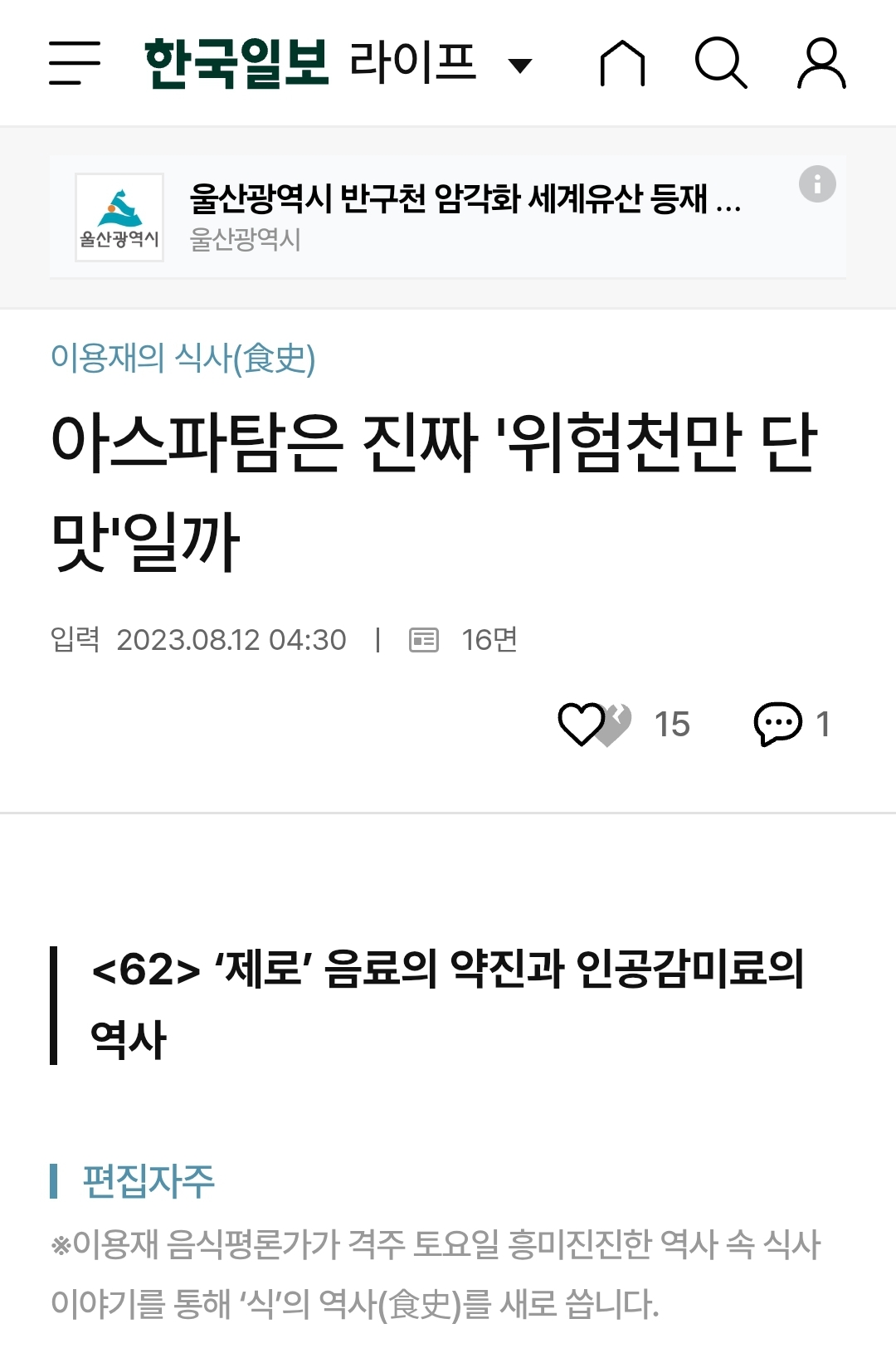 아스파탐은 진짜 '위험천만 단맛'일까 | 한국일보