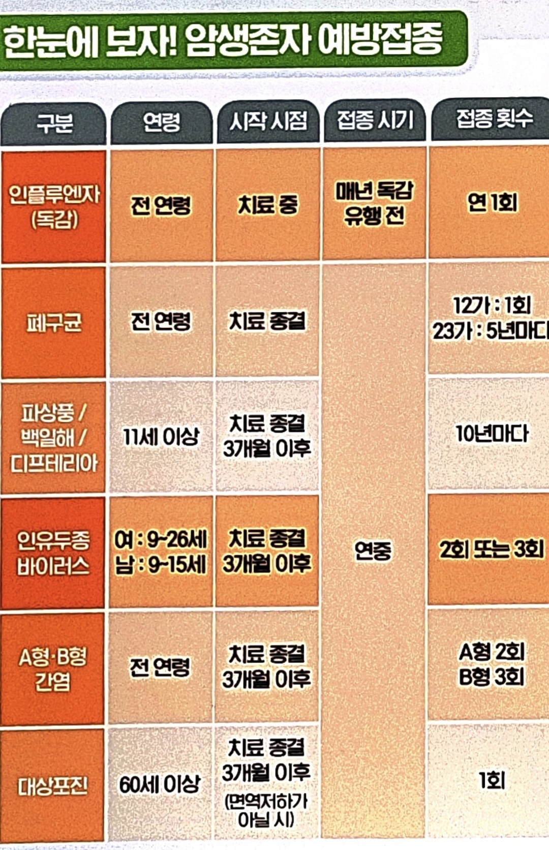 암생존자의 예방접종 (국가암정보센터 홍보물) 본문