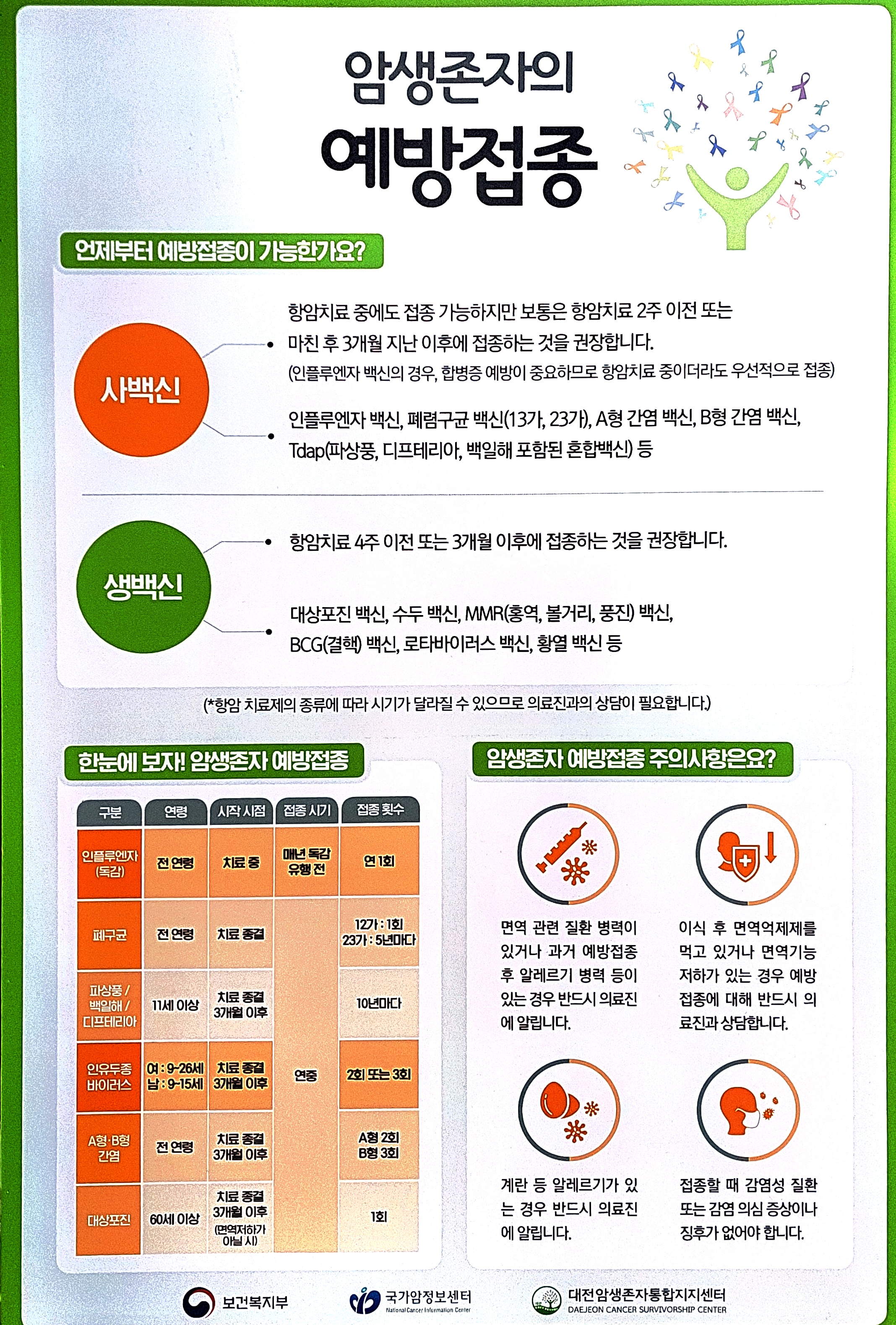 암생존자의 예방접종 (국가암정보센터 홍보물) 본문