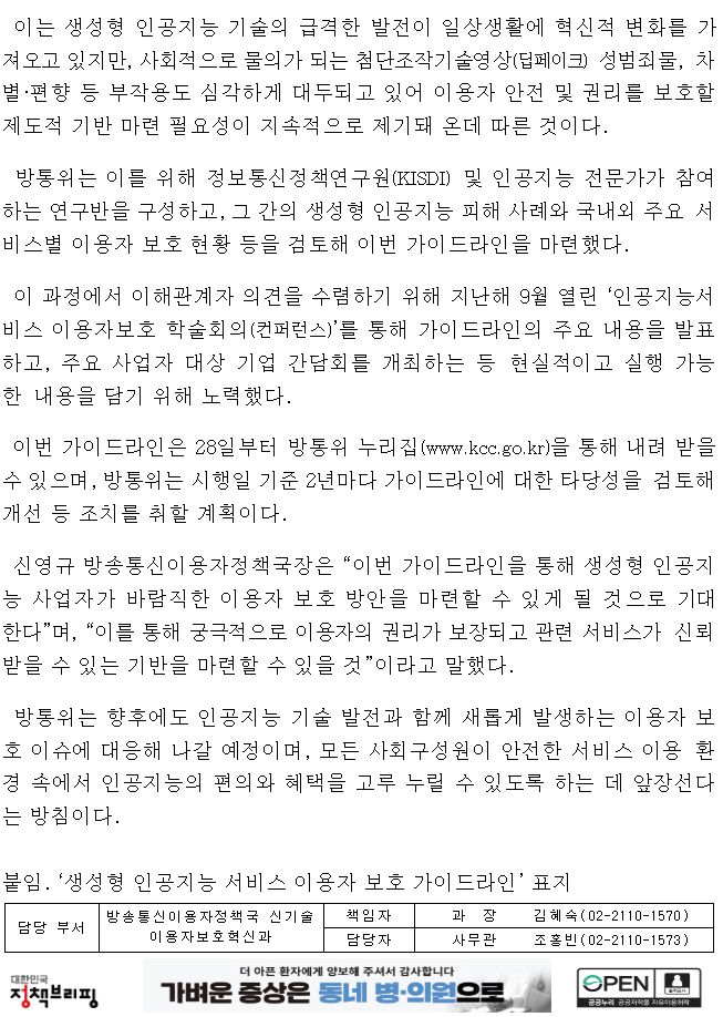 방송통신위원회 누리집 > 알림마당 > 보도자료 상세보기(“「생성형 인공지능 서비스 이용자 보