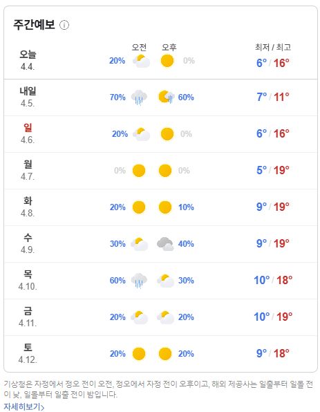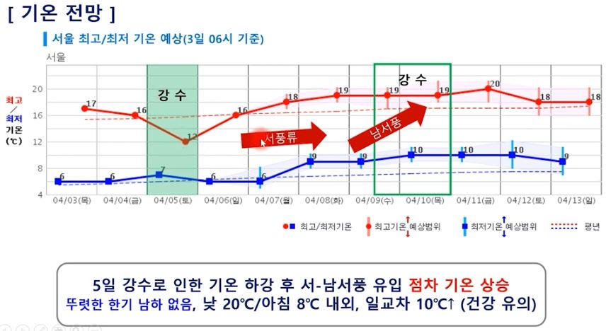 2025.4.4.금~ 4.13.일. 일기예보) 5일 토요일 전국 비, 이후 봄날씨 본문