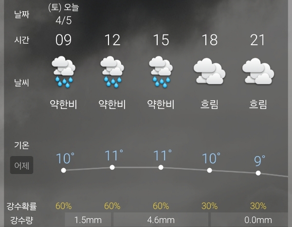 토요일 전국 비! 황사까지! 서울 벚꽃 공식 개화(기상청 예보 25년 4월 4일 17시 기준)