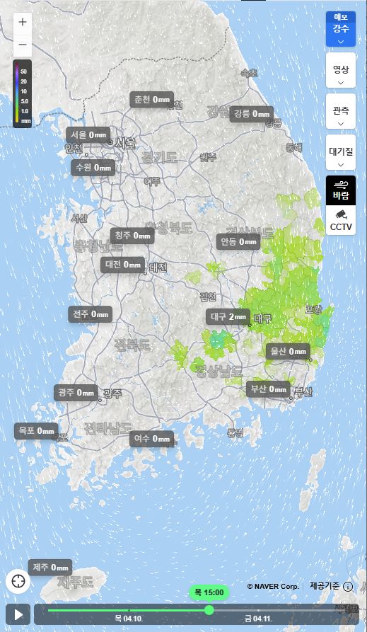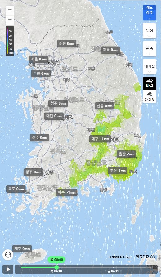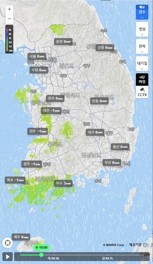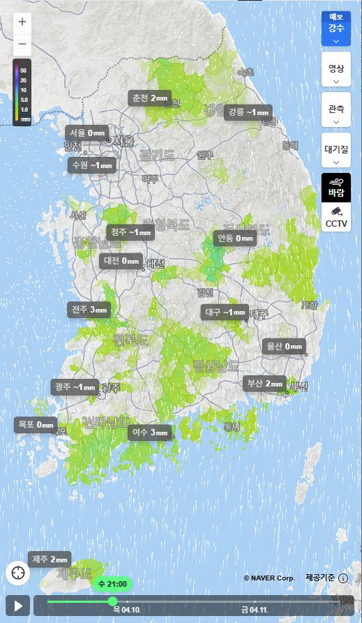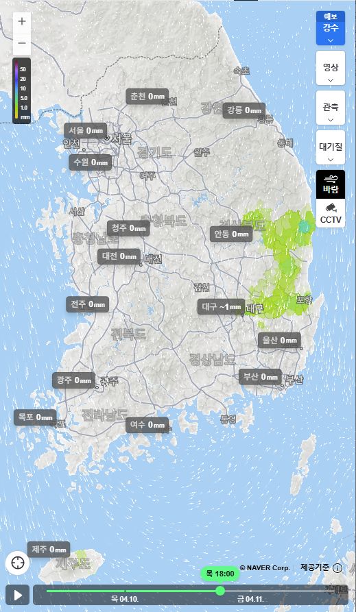 기상청에는 빗방울, 네이버에는 흐림으로만 예보하는 지방도 많습니다.