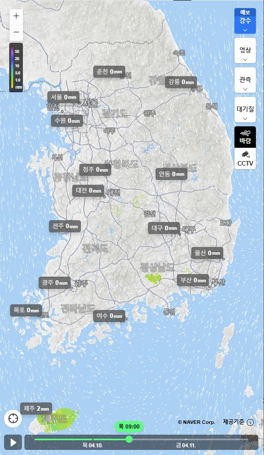 벚꽃 폈는데 전국 비 소식! 내일까지 이어져요. (기상청 예보 25년 4월 9일 5시 기준) - 기상청